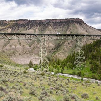 Gardner River Bridge, Straßenbrücke über den Gardner River im Yellowstone-Nationalpark im US-Bundesstaat Wyoming