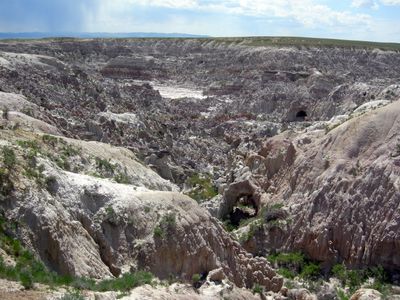 The formation spans 320 acres of land, featuring deep ravines, caves, and eroded earth formations shaped by natural processes over time.