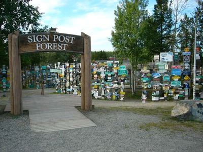 Sign Post Forest, Territorial historic roadside attraction in Watson Lake, Canada.