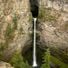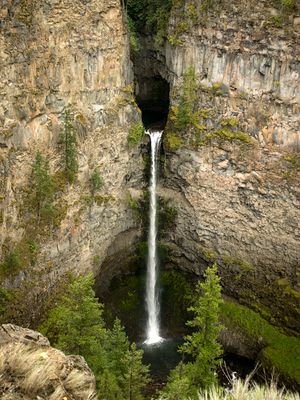 Spahats Creek plunges 73 meters from a narrow hanging gorge into a wider canyon, creating a vertical drop through volcanic rock formations.