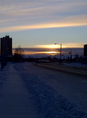 The town of Hay River extends along the southern shore of Great Slave Lake at the mouth of its namesake river at 165 meters elevation.