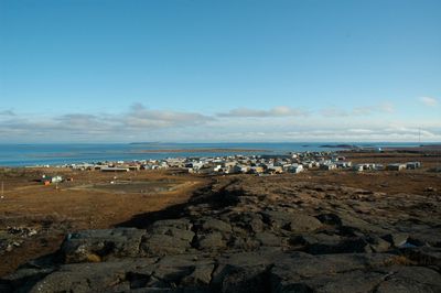 Located at an elevation of 23 meters, Kugluktuk extends along Coronation Gulf, marking the westernmost settlement of Nunavut near the Northwest Territories border.