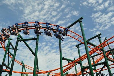 Few visitors realize this coaster uses an uncommon design produced sparingly by its manufacturer around the world. The hanging seating arrangement gives riders a completely different sensation compared to traditional looping coasters.