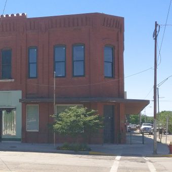 Visitors can examine the exterior features of the bank building at the intersection coordinates 36.804167 latitude and -98.666944 longitude in Oklahoma.