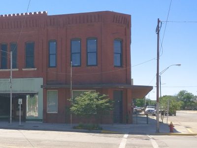 The bank building incorporates regional limestone materials in its construction, connecting the structure directly to the natural resources of Oklahoma territory.