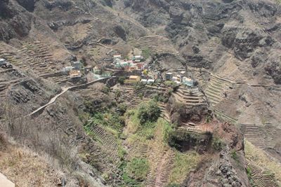 Fontainhas is a small fishing village on the coast of Ribeira Grande in Cabo Verde. The settlement features low-rise houses clustered closely together and crossed by narrow, winding paths that lead down to the water.