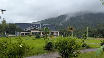 Palikir is the national capital of the Federated States of Micronesia, set inland on Pohnpei island among forested hills. The governmental complex spreads across a green campus with administrative offices, official residences, and landscaped grounds beneath the canopy.