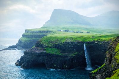 Múlafossur, Coastal waterfall in Sørvágs Municipality, Faroe Islands.
