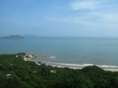 Lower Cheung Sha Beach extends for three kilometers along the southern coast of Lantau Island, featuring white sand and clear water conditions.