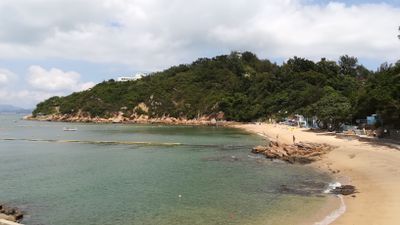 The 100-meter-long beach features white sand and faces Kwun Yam Wan on the eastern coast of Cheung Chau island, earning a Grade 1 water quality rating.