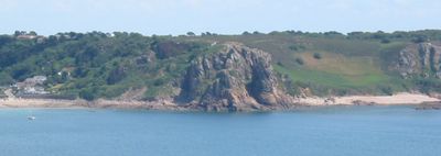 La Cotte de St Brelade consists of granite cliffs with a cave formation containing multiple sediment layers from different geological periods.