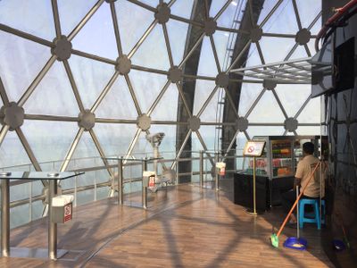 The main structure opens across several floors, including a café that rotates once every thirty minutes. It is best visited in the late afternoon, when the light softens over the water.