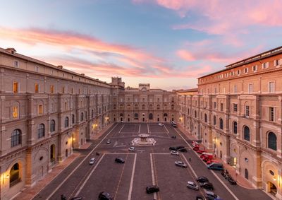 Pope Julius II established the Vatican's sculpture collection in the courtyard, including notable Roman works such as Laocoön and His Sons and Apollo Belvedere.