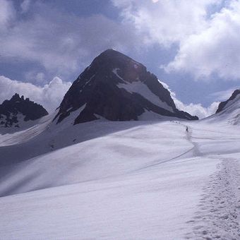 Piz Buin is a 3,312-meter peak in the Silvretta range that forms the border between Austria's Vorarlberg region and Switzerland's Graubünden canton. The mountain has two summits of different heights that climbers aim to reach during their ascent.