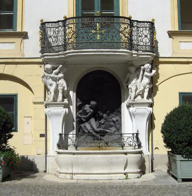 The fountain combines both decorative and functional elements, using materials that demonstrate the technical capabilities of 18th-century Viennese craftsmanship.