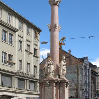 Built in 1703 by sculptor Cristoforo Benedetti, the column commemorates the departure of Bavarian troops from Tyrol during the War of Spanish Succession. This red Kramsach marble monument has remained a landmark throughout the following centuries.