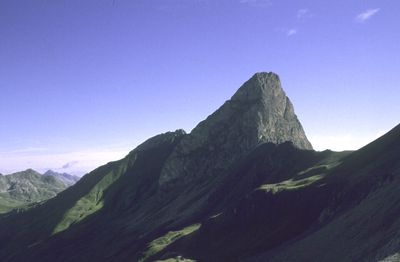 The Roggspitze rises to 2747 meters above sea level, featuring steep rock faces and multiple climbing routes through the limestone formations.