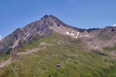 The mountain structure allows climbers to observe four different valleys simultaneously from its peak, creating distinct perspectives of the surrounding Alpine landscape.
