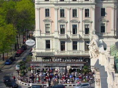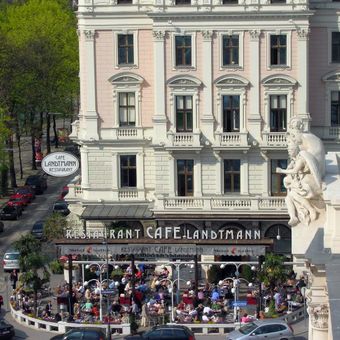 The Landtmann coffee house occupies the ground floor of Palais Lieben-Auspitz, near the Burgtheater and University of Vienna on Ringstraße.