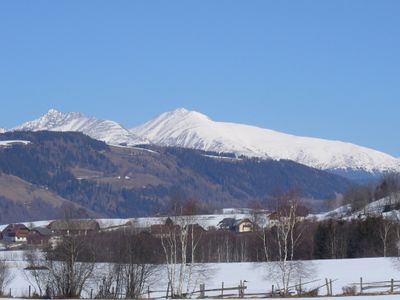 The summit provides unobstructed views spanning both the Niedere Tauern mountain range and extending toward the distant peaks of Dachstein and Hohe Tauern.