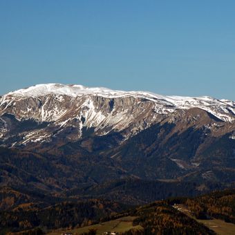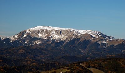 The limestone massif of Hohe Veitsch extends 5.5 kilometers from its main peak at 1,981 meters to a plateau at 1,500 meters altitude.