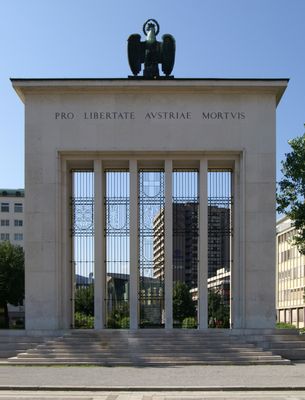The inscription 'Pro Libertate Austriae Mortuis' adorns the architrave, translating to 'For those who died for Austria's freedom.'