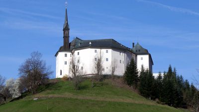 Schloss Schernberg stands on a hilltop two kilometers above the town center, offering views over the Salzach River valley.