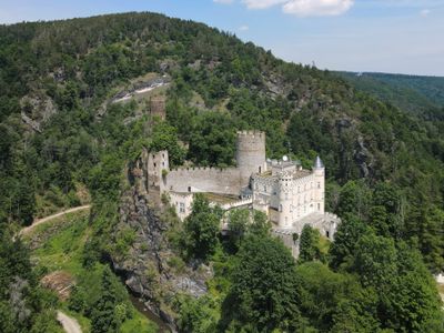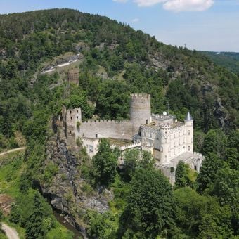 While the castle interior remains closed to visitors, numerous hiking trails around the grounds offer views of both the castle and Gudenus Cave below.