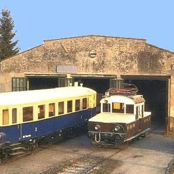 The museum preserves railway heritage through exhibitions of historic vehicles, including the last remaining 5041.03 diesel railcar from 1933.