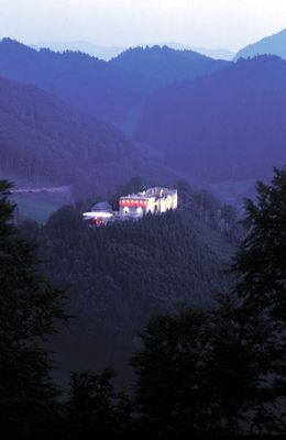 The castle grounds now include the Burgarena, an outdoor performance venue that hosts theatrical productions and musical events throughout the summer season.