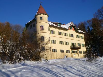 Schloss Brunnwald is a hunting castle in Vorderweißenbach, Austria, built from stone and surrounded by forest. A prominent four-story tower rises from the main building and forms the most recognizable feature of the structure.
