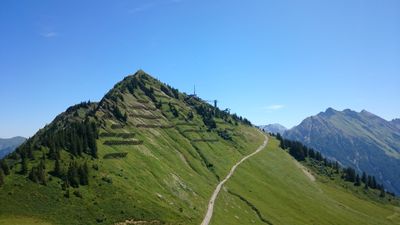 The mountain paths of Walmendinger Horn developed from traditional alpine cattle routes used by local farmers since the medieval settlement of Kleinwalsertal.