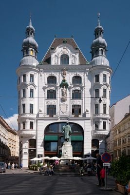 The building represents the evolution of Viennese commerce, from its origins as a merchant gathering place to its current retail establishment status.