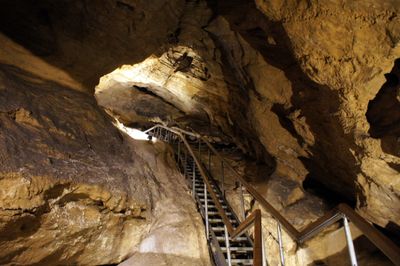 The cave entrance requires a 20-minute uphill walk from the parking area on LB 39, with guided tours available from May through October.