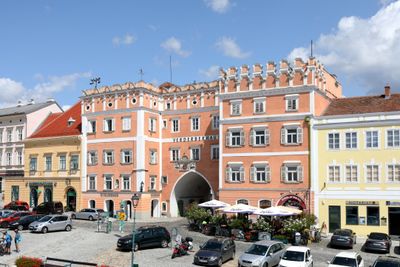 The Verderberhaus occupies a prominent corner position on Retz's main square, combining addresses 2 and 34 into one structure. The facade displays typical characteristics of Lower Austrian architecture, with traditional design elements that reflect the construction approach of the region.