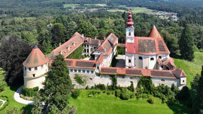 Schloss Hollenegg is a castle complex in Bad Schwanberg that combines architectural elements from different periods: medieval, Renaissance, and Baroque. The rooms display stonework, courtyards with arcades, and grand halls developed over several centuries.