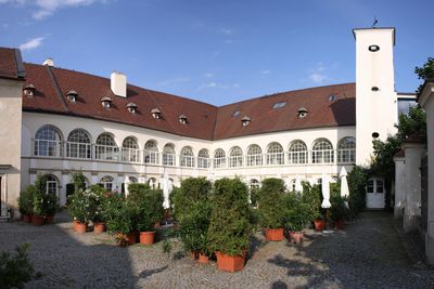 Today the site operates as an event and seminar center run by the municipality of Katzelsdorf. Visitors will find a restaurant and public gathering areas available on the grounds.