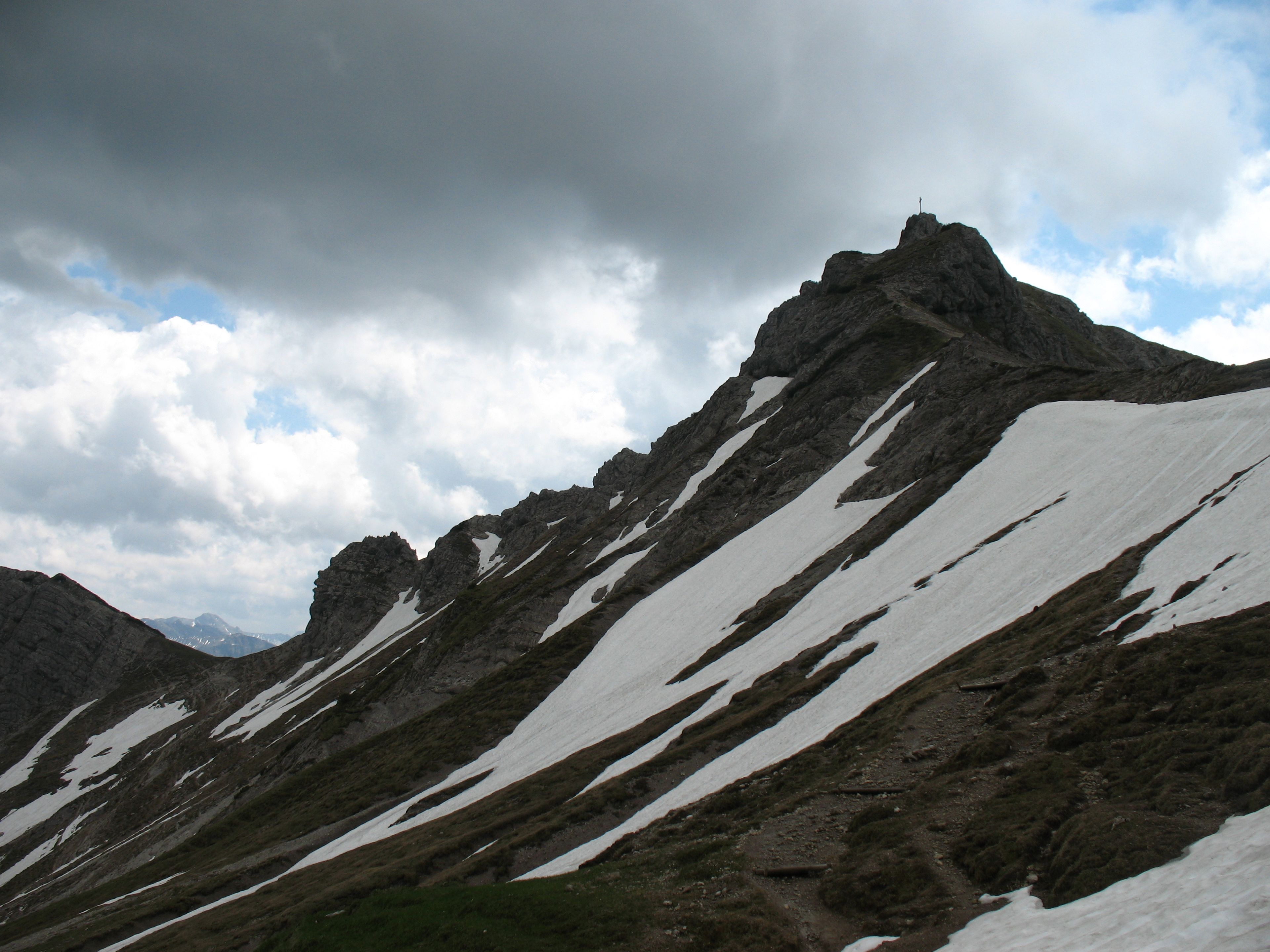 The Steinkarspitze reaches an elevation of 2,650 meters, featuring steep rock faces and multiple climbing routes to reach its peak point.