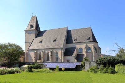 The stone church stands on the southern slope of Jauerling mountain at 644 meters elevation, featuring medieval architectural elements throughout its structure.
