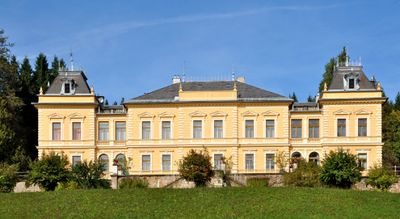 Industrial magnate Carl Auer von Welsbach commissioned architects Anton and Josef Bierbaum to construct the castle between 1898 and 1900 on former Villa Marienhof grounds.
