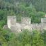 The medieval fortress stands on a steep rocky ridge above the Lois Valley, featuring two defensive towers and multiple courtyards within its stone walls.