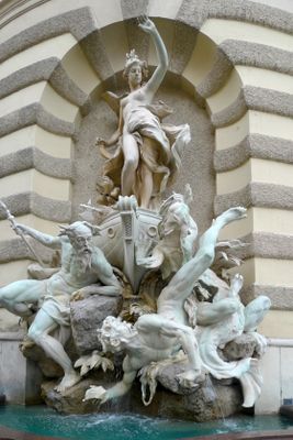 Macht zur See, Monumental fountain at Michaelertrakt of Hofburg Palace, Vienna, Austria