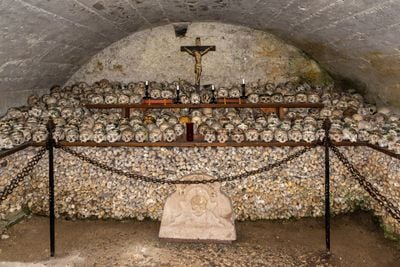 Beneath the streets of Europe's cities lies an underground world of burial chambers and crypts that tell the story of how people honored their dead across centuries. These underground spaces, ranging from simple rock-carved tombs to elaborate vaulted rooms, house the remains of millions, along with religious monuments, painted walls, and carved stone that blend Roman, Egyptian, and Christian traditions. Walk through these passages and you encounter the actual practices of death and faith that shaped European life from the 1st century through the 1800s. The frescoes on the walls, the mosaics underfoot, and the carefully arranged bones reveal not just how different cultures buried their dead, but also what they believed about the afterlife and how they saw themselves in the world. Each crypt and catacomb is like a time capsule, a place where the concerns of ancient Romans, medieval Christians, and colonial communities became permanent in stone and bone. From the systematic arrangements in Paris, where millions were moved to former quarries when cemeteries overflowed, to Vienna's imperial burial chambers that housed rulers for centuries, these underground networks show how cities solved practical problems while expressing deep spiritual meaning. Whether decorated with geometric patterns made from thousands of bones, painted with biblical scenes, or simply lined with neat rows of sarcophagi, each site reveals something different about how its people lived and what they thought mattered when life ended.