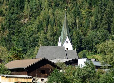 The Pfarrkirche hl. Johannes der Täufer is a Catholic church in Neukirchen am Großvenediger featuring a Gothic north tower, barrel vaults, and late Gothic portals on its western and southern sides. The building sits in the town center and is surrounded by a cemetery.
