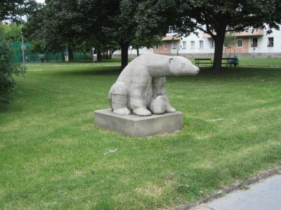 Sitzender Eisbär, statue in Brigittenau, Austria