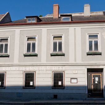 Mariensäule u. hist. Vorgängerbebauung am Rathausplatz