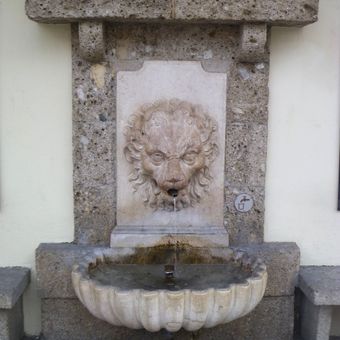 Löwenkopfbrunnen, Protected water well in Altstadt, Austria