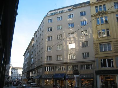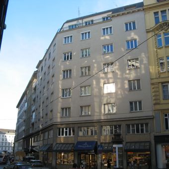 The building stands near public transportation stops and connects to both Brandstätte street and Bauernmarkt, making it accessible from multiple directions.