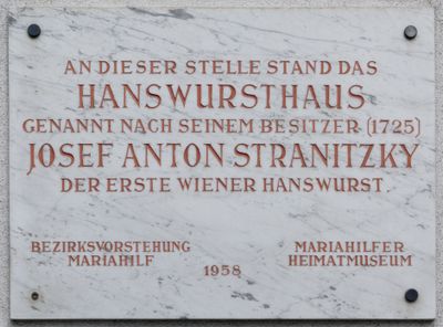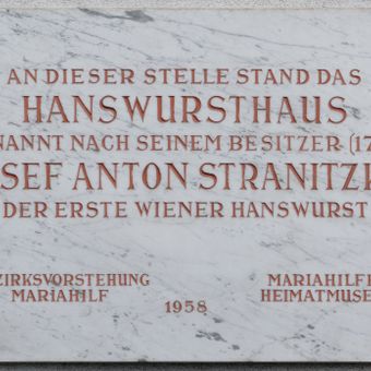 Gedenktafel für Josef Anton Stranitzky, Gedenktafel am Gebäude Mollardgasse 30, Wien Mariahilf