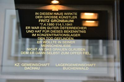 Gedenktafel Fritz Grünbaum, Gedenktafel am Gebäude Wollzeile 36, Wien Innere Stadt